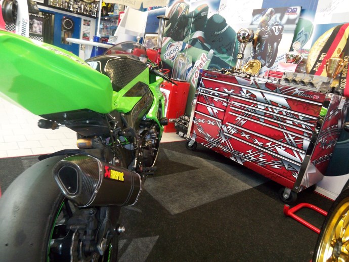 Dankbare Rennfahrer bringen ihre Trophäen. So stellt man sich eine deutsche Werkstatt vor. Sauber, ordentlich und penibel liegt hier alles auf seinem Platz.
