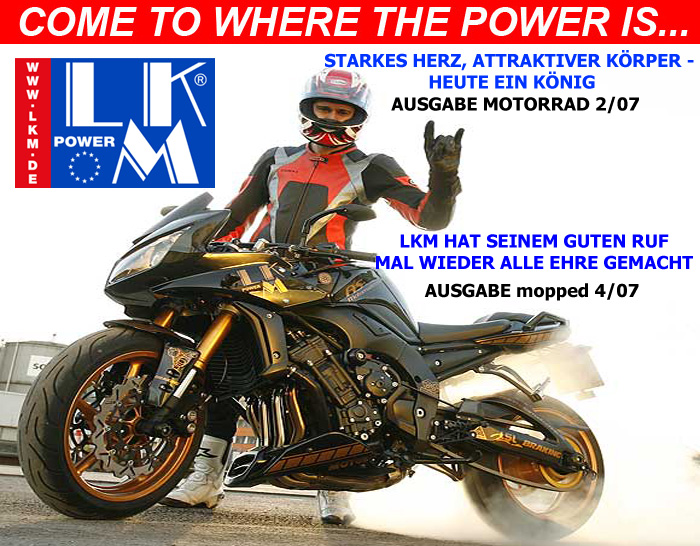 ´Die noch bessere Nachricht: Das Motorrad bleibt TÜV-konform. Und LKM gewährt zwei Jahre Garantie. Unabhängig, ob der Kunde seine Maschine mit einigen tausend Kilometern auf den Hof stellt, ein Neufahrzeug bei ihm kauft oder anliefert.´