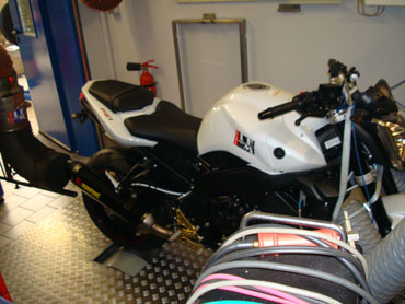 Motorrad: ´Die von Ihnen durchgeführten Tuningmaßnahmen sind TÜV-konform. Wie ist es möglich, die Leistung der Euro-3-Norm noch zu steigern? - Hennes Löhr: ´Wir optimieren den Motor, wir bauen ihn ja nicht komplett um. Eine verbesserte Zylinderfüllung durch eine verbesserte Strömungstechnik erhöhen Effektivität und Leistung. In den meisten Fällen nicht aber den Verbrauch. Deshalb sind unsere getunten Motoren oft sparsamer, stoßen folglich weniger Kohlendioxid aus und halten alle anderen Schadstoffgrenzwerte ein. Eine Lambdasonde bleibt ebenso ins Motormanagement eingebunden wie ein Kat. Auch unsere Brennraumoptimierung und das Variieren des Verdichtungsverhältnisses sind nicht schadstoffrelevant.´